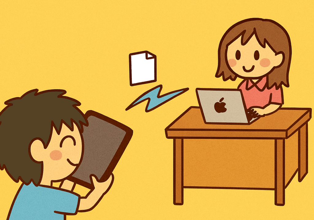 作成した資料や教材は、AirDropで数秒でiPadへ転送可能。
