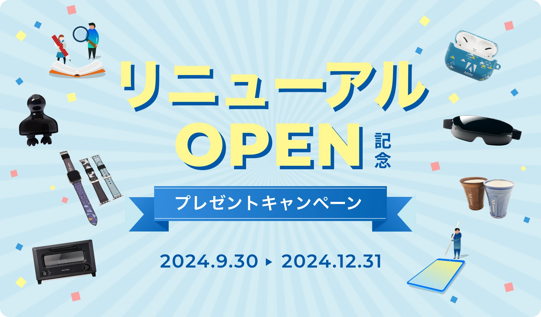 リニューアルを記念いたしまして、2024年9月30日(月)から2024年12月31日(火)の期間内に資料をダウンロードしていただいた方の中から、抽選で各商品をプレゼントします。